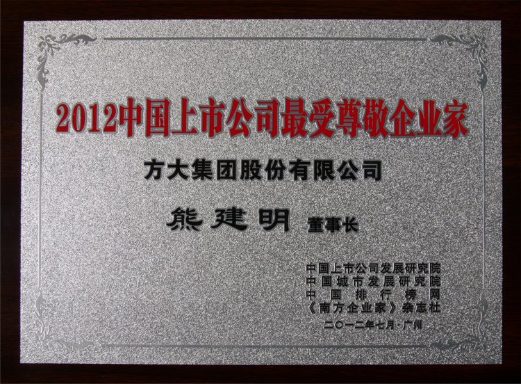 2012年7月30日,“2012中國上市公司最具投資價值100強”排行榜在廣州揭曉,方大集團榮登“中國上市公司最具投資價值100強”榜單,熊建明董事長榮膺“2012中國上市公司最受尊敬企業家”。