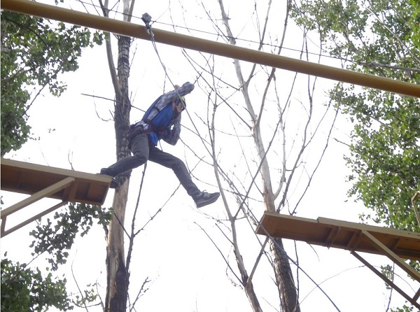 接著,兩個小組分別進行了“信任背摔”、“七巧板”、“高空斷橋”等科目培訓,以建立團隊成員間的相互信任,有效溝通與自我突破。“尋找劉連長”活動在影視城穿越中進行,兩個小隊按照教練給定的“動感顛球”、“穿越A4紙”、“飛龍升天”、“眉目傳情”、“百獸秘影”5個圖片的先后順序找到相應的點,通過大家的集思廣益相互協作和有效溝通完成,最終在規定時間內找到劉連長。通過這個訓練科目,大家明白了個人是整體的一部分,在聽從指揮的情況下,還要發揮各自的特長,把優質資源整合在一起,才能發揮更大的作用,產生更大的效能,實現最終目標。