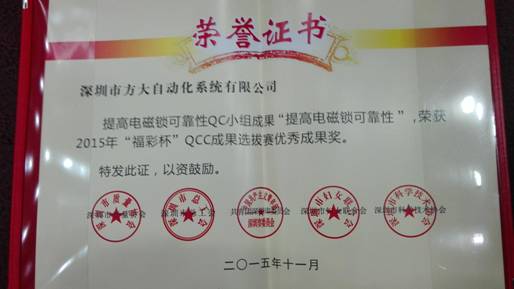 11月20日,由深圳市質(zhì)量協(xié)會(huì)、深圳市總工會(huì)、共青團(tuán)深圳市委員會(huì)、深圳市婦女聯(lián)合會(huì)和深圳市科技技術(shù)協(xié)會(huì)聯(lián)合評(píng)定的“福彩杯”優(yōu)秀QCC成果優(yōu)秀獎(jiǎng)揭曉。方大集團(tuán)股份有限公司全資子公司深圳市方大自動(dòng)化系統(tǒng)有限公司“提高電磁鎖可靠性QC小組”榮獲“深圳市2015年‘福彩杯’QCC成果選拔賽優(yōu)秀獎(jiǎng)”,自動(dòng)化公司質(zhì)量安全部黃良江榮獲“深圳市質(zhì)量管理小組活動(dòng)卓越領(lǐng)導(dǎo)者”稱(chēng)號(hào)。