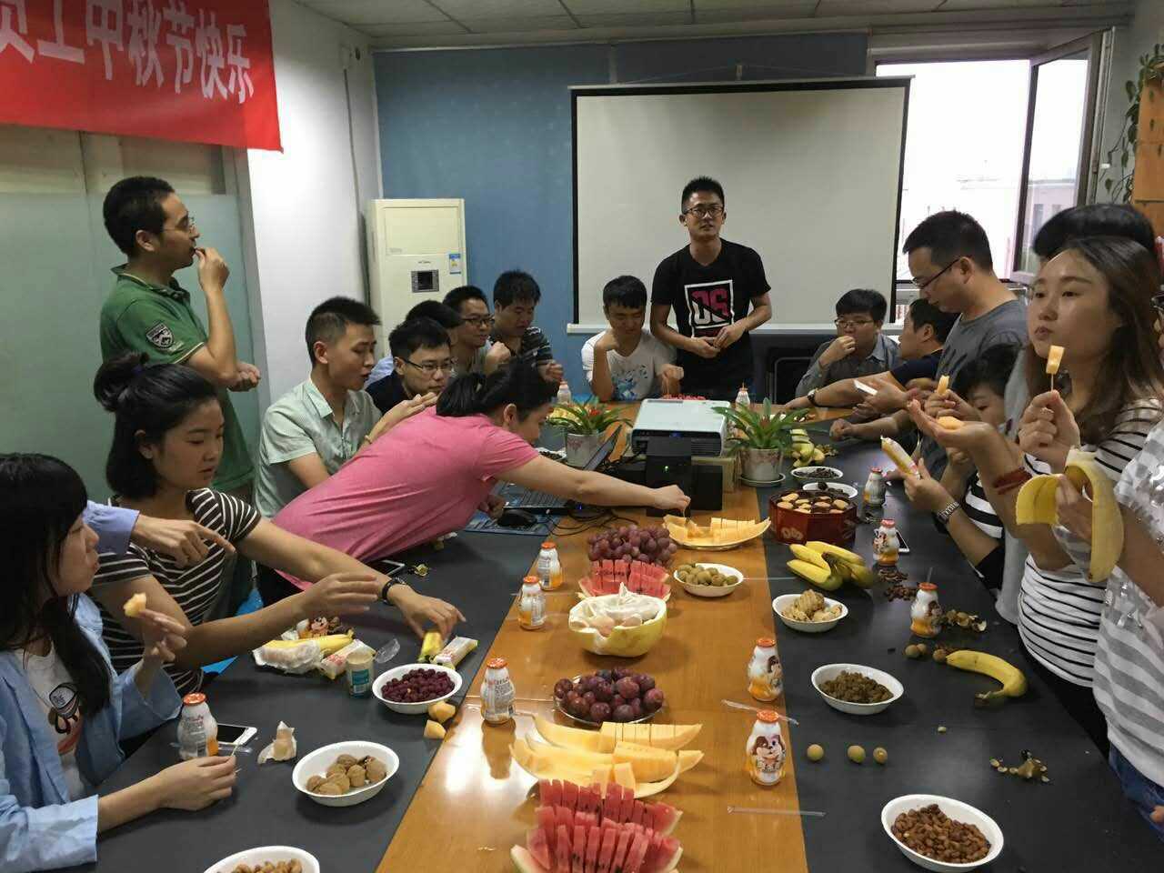 在方大集團成都公司,9月14日下午舉辦了一次輕松、熱鬧的中秋茶話會。團聚和暢聊是這次活動的主要內容,茶話會伊始,先由近期新入職同事做自我介紹,接下來各同事彼此傳遞中秋祝福。活動現場歡笑聲、祝福聲不絕于耳,精心準備的水果點心、悠揚的音樂和中秋主題背景共同營造了濃濃的中秋佳節氛圍。為了夢想,我們遠離家鄉,但在這里,我們可以暫且放下一切包袱,沉醉在歡聲笑語中,忘卻思鄉的煩惱。因為有方大人聚在一起,所以我們一直都不會感到孤單。