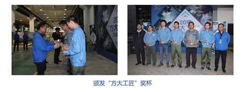 在評委們嚴謹公正的考核下,隨著緊張而激烈的比賽的結束,各比賽工種的評比結果也陸續出爐。東莞公司的謝輝、蔣亞峰、黨要飛、謝昌元分別獲得下料、組框、打膠、電焊的第一名,江西新材的張文彪、李芳根分別獲得打磨、噴涂的第一名,自動化公司的肖五生獲得組裝三項的第一名。在決賽總結大會上,這7位選手被授予2016年“方大工匠”稱號。不僅如此,他們還將分別獲得1000元現金獎勵、年底加薪及接受集團公司專訪等福利待遇。