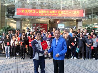 2019年12月28日,是方大集團股份有限公司成立二十八周年紀念日。為熱烈慶祝這一重要節日,公司舉辦了升旗儀式、“悅動方大”積分賽以及晨跑等系列活動,廣大員工踴躍參與。