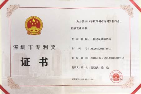 方大建科此次獲獎專利“一種建筑幕墻結構201020111464.7號”,是針對現有建筑玻璃幕墻技術的優缺點,發明的一種新型單元式建筑幕墻結構,技術水平高,原創性強,對促進幕墻領域的科技創新發展有突出的作用,取得了顯著的經濟、社會效益。新型單元式幕墻具有傳統單元式幕墻加工質量好、工地安裝快等各項優點,型材截面更簡潔,更易于開模和加工。與傳統單元式幕墻相比,其結構更合理,傳力途徑更清晰,更利于板塊整體受力;同時減少了加工工序,縮短了加工周期;克服了膠條防水性能差的缺點,防水更加可靠。此項專利解決了許多復雜的技術難題,有效推動了擁有自主知識產權的新型單元式幕墻系統的快速應用,使單元式幕墻的成本出現了大幅下降,為節能環保事業做出貢獻。